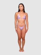 The Manoa top is a classic triangle top with seamless stitching that provides a skin-like feel for maximum comfort. This top features adjustable ties with gold-plated charms around the neck and back.